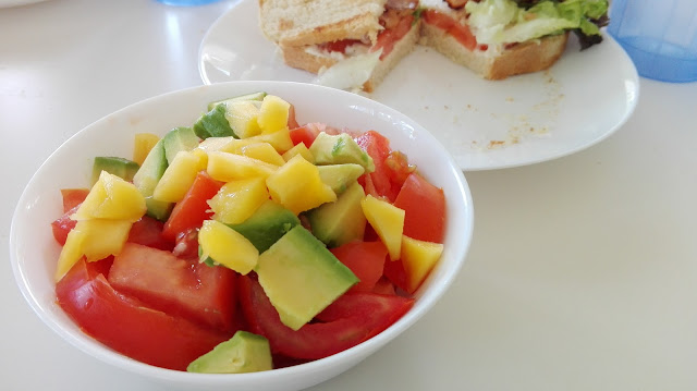 2) Pelar y cortar a dados el mango y el aguacate y hechar un chorrito de zumo de limón